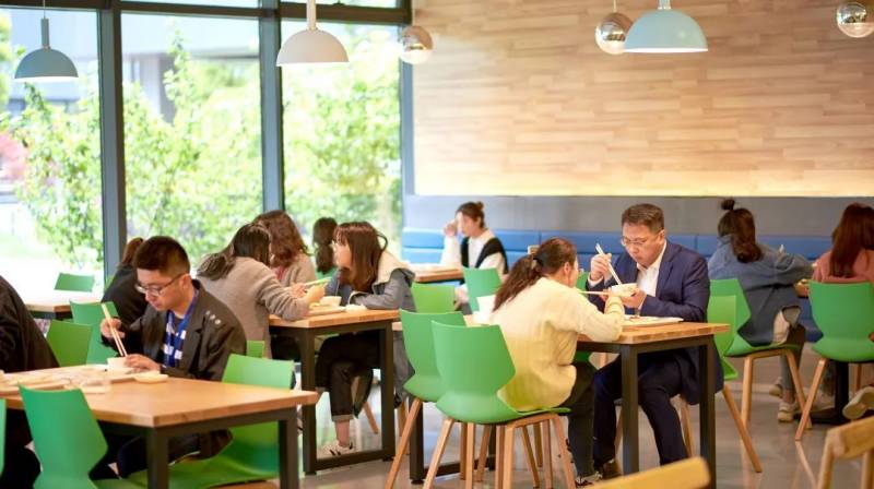 中膳打造園區(qū)、寫字樓的食堂時(shí),改變傳統(tǒng)食堂布局,同時(shí)設(shè)立四人位、多人圓桌和吧臺(tái)的設(shè)計(jì),保證了高峰期時(shí)人們的用餐需求,實(shí)現(xiàn)了場(chǎng)景體驗(yàn)與品質(zhì)的全面升級(jí)。餐廳風(fēng)格簡(jiǎn)約時(shí)尚,注重空間體驗(yàn)的優(yōu)化,提高人們就餐的幸福感,讓大家感受到吃飯也是一種享受和休息。
